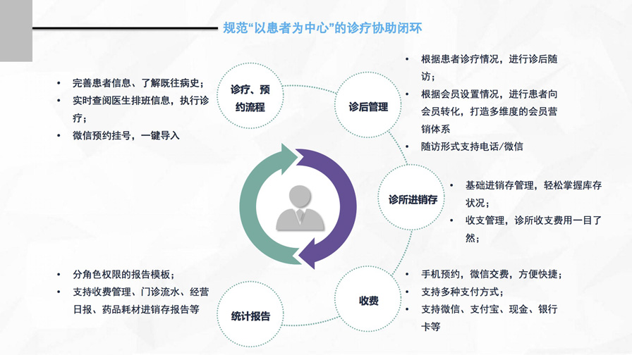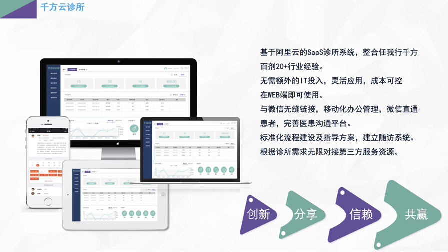 千方云診所是集藥房管理、劃價收費、電子處方、財務(wù)統(tǒng)計、中醫(yī)智能診斷等為一體的診所管理軟件。采用云存儲服務(wù),數(shù)據(jù)永不丟失,安全可靠,只需瀏覽器訪問登陸網(wǎng)站即可使用。