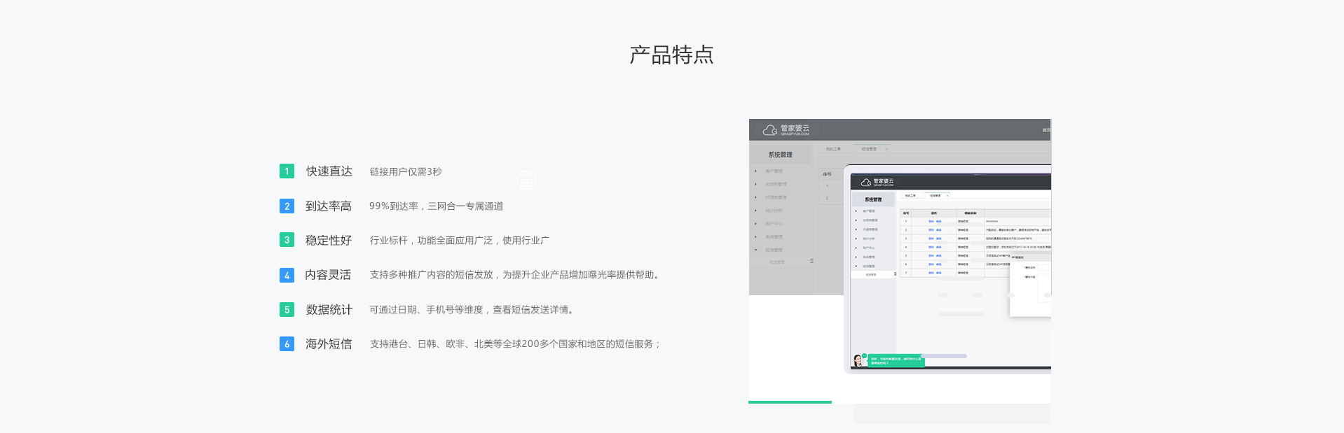 管家婆云短信,是管家婆云為管家婆軟件用戶提供的一種通訊服務(wù)的能力,支持短信驗(yàn)證碼、短信通知等多種內(nèi)容推送,三網(wǎng)合一的專屬通道,達(dá)到率高達(dá)99%。