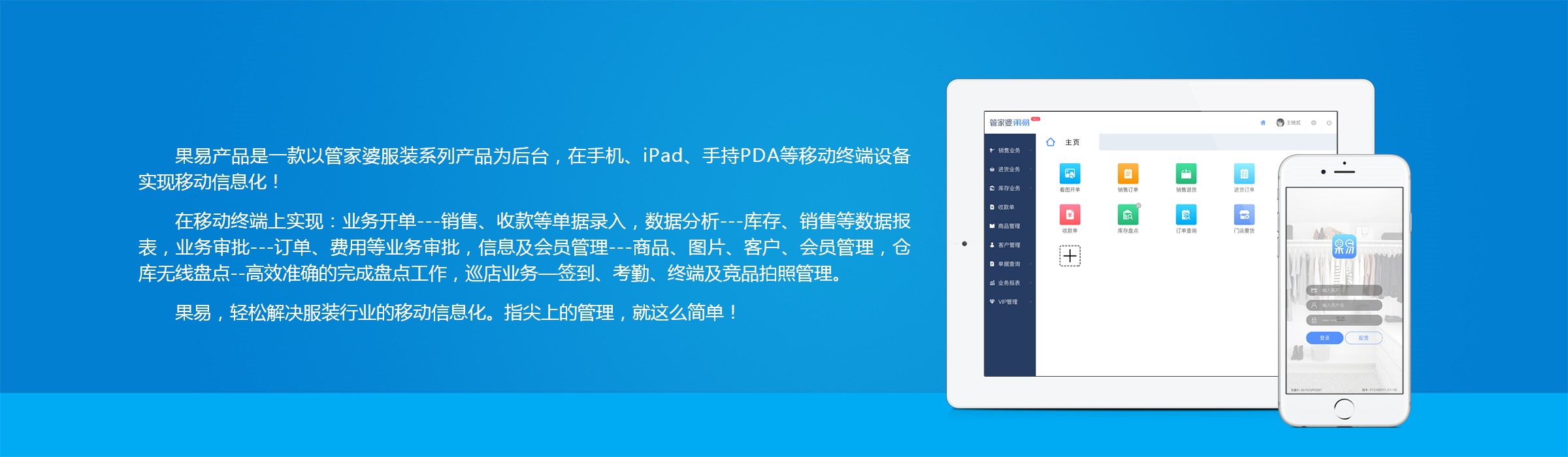 果易,輕松解決服裝行業(yè)的移動(dòng)信息化。指尖上的管理,就這么簡(jiǎn)單!
